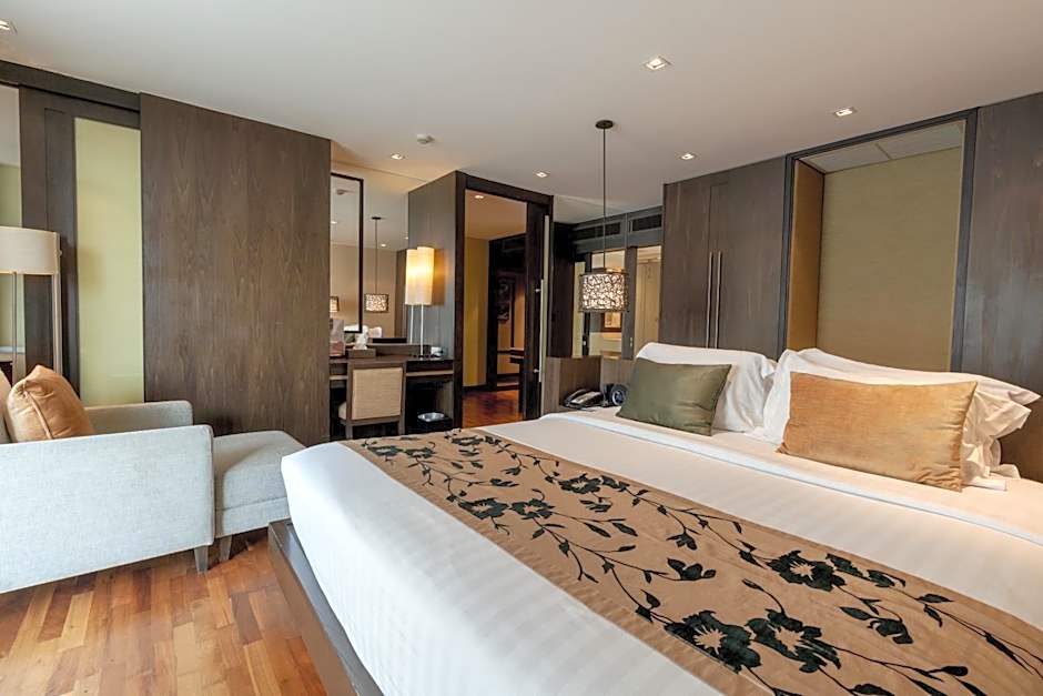 Located on a higher floor, the room comes with sea views. Thoughtfully designed to accommodate the wheelchair bound, enjoy gentle earthen tones inside, contrasting with bright and tropical views of the coast.